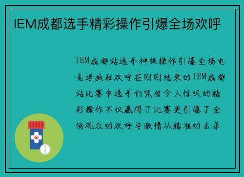 阅读IEM成都电竞产业政策支持分析 随着电子竞技产业的蓬勃发展,成都作为中国西部的重要城市,近年来在电竞领域展现出强劲的发展势头。IEM(Intel Extreme Masters)作为全球顶尖的电竞赛事...